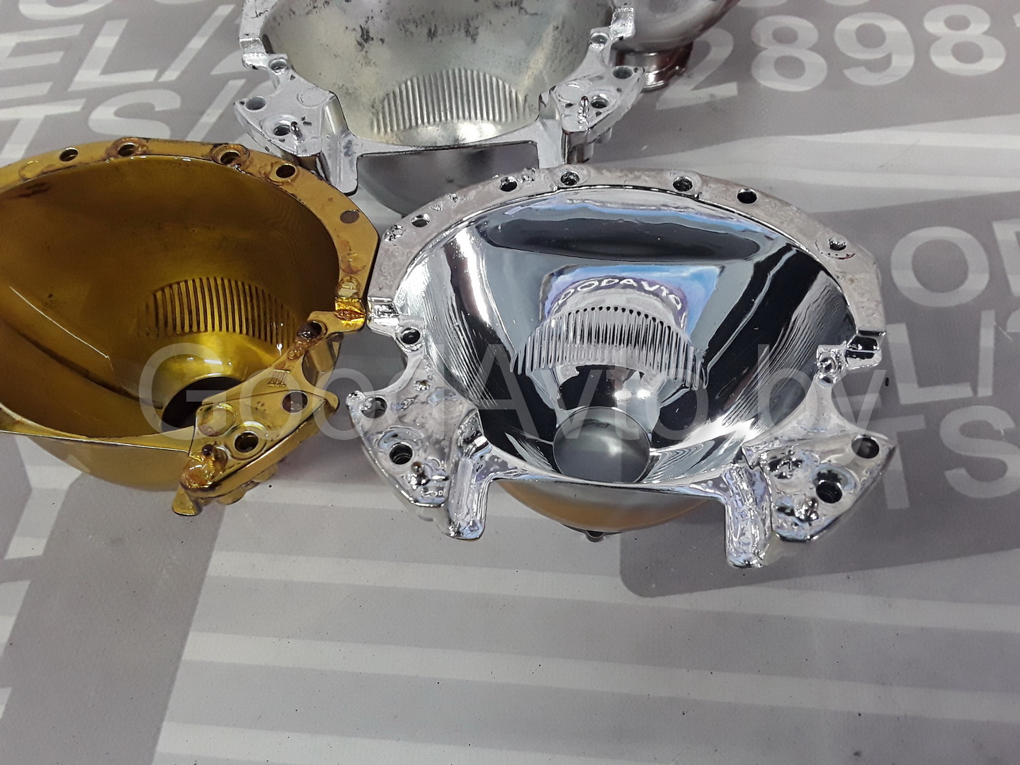 пескоструйная зачистка отражателя, подготовка и покрытие высокотемпературным лаком, напыление алюминия в вакуумной камере